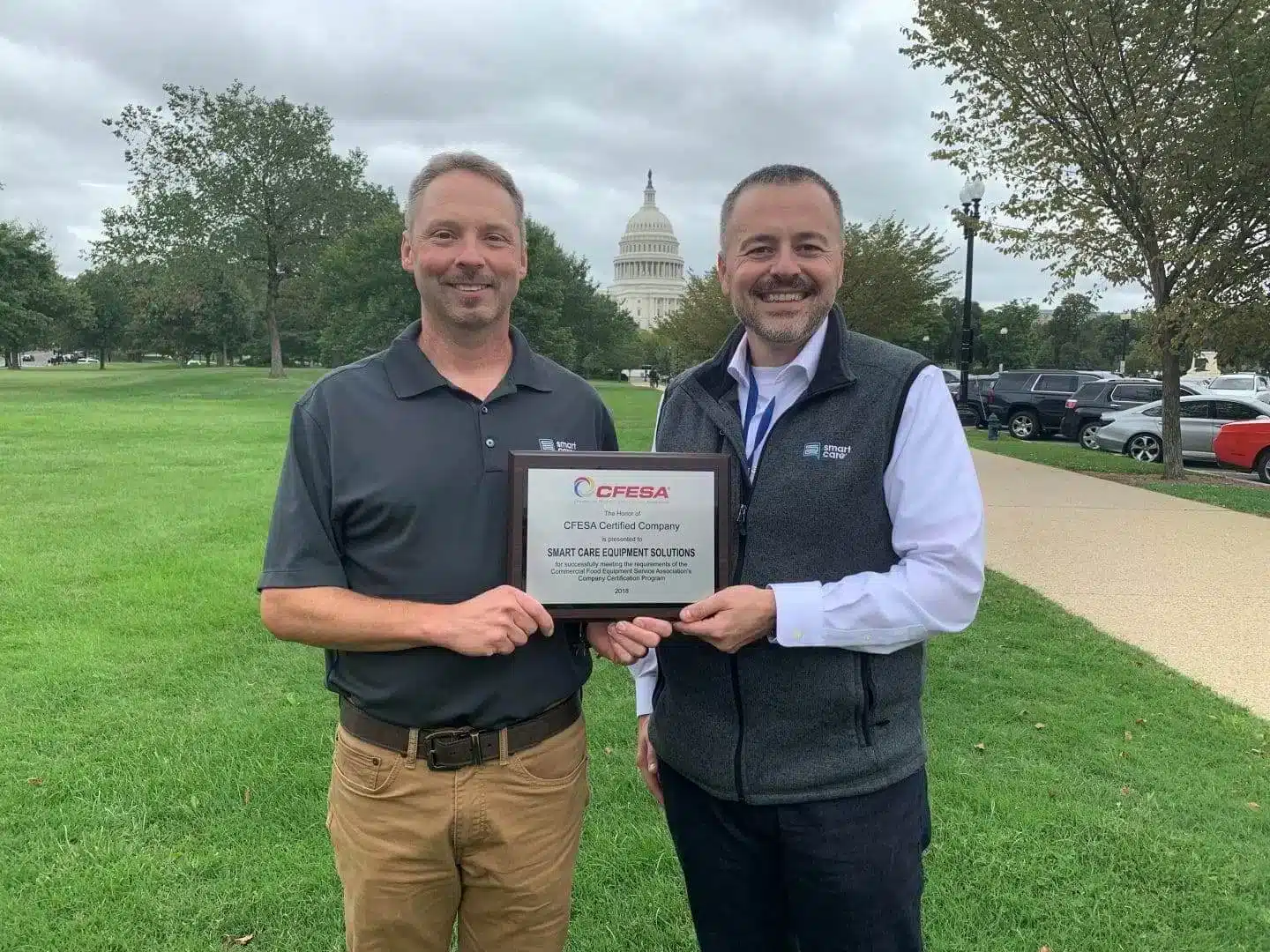 Smart Care® Equipment Solutions (Smart Care) is excited to announce they are now a CFESA Certified Company. Gyner Ozgul, Senior Vice President of Operations and Robert Harris, OEM Business Development Manager accepted the award at the 2019 CFESA Conference in Washington, DC. The CFESA certification is a meaningful seal of excellence in the commercial kitchen equipment repair industry.